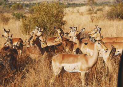 The Pilanesberg National Park, is situated north west of Johannesburg/Pretoria and about 2/3 hours away. Pilanesberg is characterized by impressive volcanic mountain forms and rolling savannah grasslands 1300 million years old. These impressive features have created one of the most topographically diverse Reserves to be found in South Africa. The 50 000 of Pilanesberg National Park are home to some 10 000 animals and the park is now one of the privileged reserves hosting the Big Five and 364 species of bird. A major reason for Pilanesberg’s diversity of animals is that it lies in the transition zone between the arid Kalahari in the west and the humid Lowveld of the Northwest Province. The seven different habitats at the Pilanesberg attract and cultivate prolific birdlife.