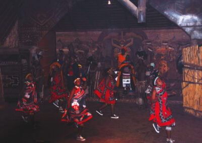 Local families live permanently in each of these five homesteads and visitors are invited to observe the African way of life by either enjoying a short tour of the villages or actually living among these families in guest accommodation, offering all the necessary modern day amenities and comforts discerning visitors are accustomed to. Experience African culture at its best. Zulu warrior dance combined with other ethnic traditional dances. See the colourful huts of the Ndebele tribe adjacent to those of the Zulu, Xhosa, Pedi and Sotho. Lunch/Dinner includes crocodile as well as a range of exotic African dishes.