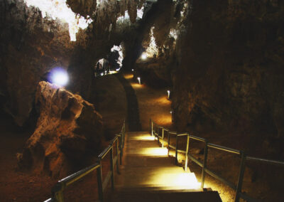 After walking through the small exhibition, visitors then begin the tour of the caves. As the caves are deep and have some narrow pathways, visitors must wear comfortable shoes, and leave large handbags or luggage behind. People who suffer from claustrophobia, asthma or chest problems may find the visit too difficult. Highlights of the cave include the ‘bottomless’ lake and the small caverns where the most famous fossils were found. After exiting the caves you can follow the footpath around to the excavation site where scientists from the University of the Witwatersrand are continuing to work on finding more fossils.